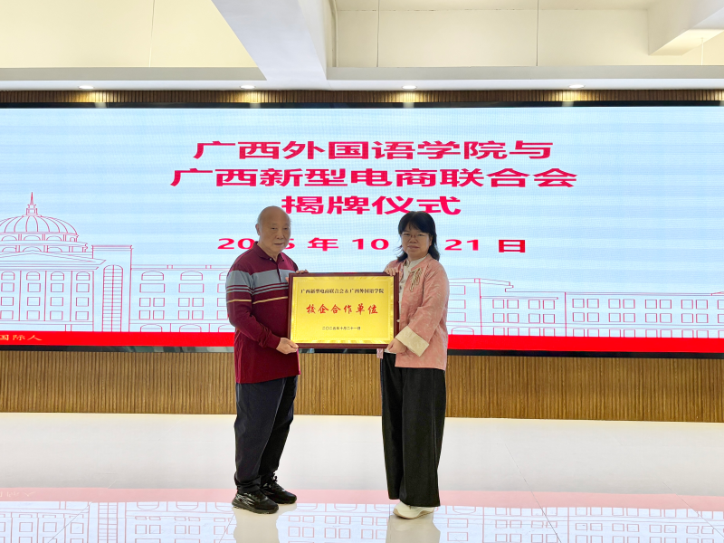 迎评促建进行时:广西外国语学院与广西新型电商联合会战略合作授牌揭牌仪式暨座谈会,赋能教学助评建