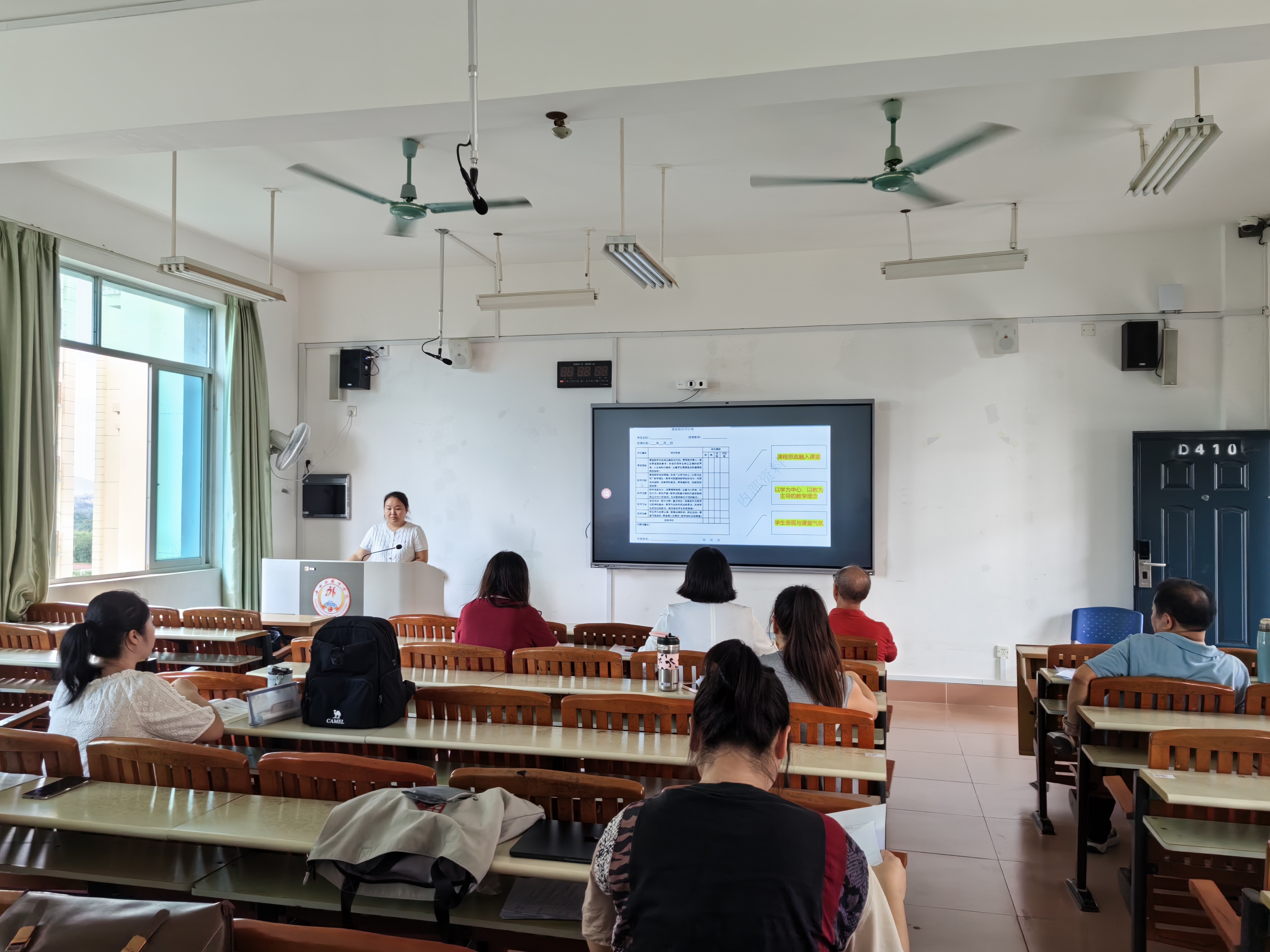 本次活动“对标审核评估指标,创新教学设计,激活课堂互动”为核心主题,专门围绕审核评估中“教学环节完整性”“学生主体地位”“专业实践融合”等核心要求,开展教学规范与高效方法专项解读,帮助教师精准把握评估导向下的教学重点。由学院院长陈倩教授、执行院长吕国清教授、相关系主任以及银龄教师组成的评委组,依据涵盖“教学目标设计”、“讲授精准度”、“内化任务合理性”、“讨论组织有效性”及“学生参与度”五大维度的评分标准,对教师表现进行综合评价,既关注教学环节的完整性,更侧重评估指标中“学生能力培养”“专业实践性”的落地效果。