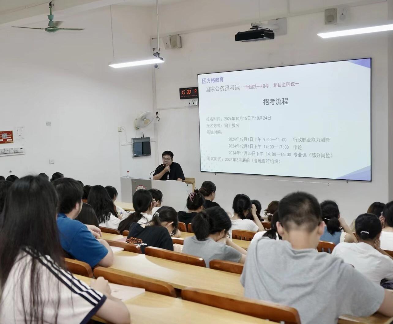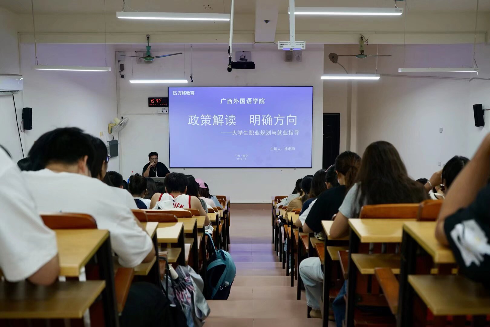 为破解数字经济管理学院学生在职业规划中面临的“公职考试政策模糊”“就业证书选择困惑”等问题,切实提升学生就业竞争力。10月14日,广西外国语学院致达教育学院就业指导中心联合广西方格教育、臻敢为创客联盟,在知新楼A208教室举办“大学生职业规划与就业指导——数字经济管理学院专场”讲座。本次讲座特邀广西公职类考试研究领域资深专家徐老师担任主讲人,聚焦“公职类考试政策解读”与“就业必备证书讲解”两大核心主题展开深度讲解,数字经济管理学院2026届毕业生现场参与。