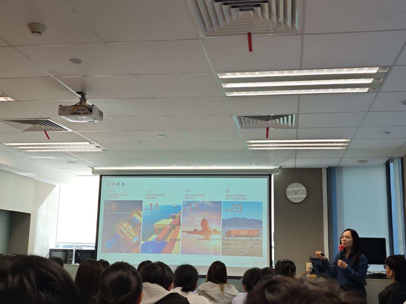 当天上午,师生一行受到南宁嘉顺达物流公司相关部门负责人的热情接待。南宁嘉顺达物流的人力资源总监与海运部负责人向同学们介绍了公司的发展历程与业务前景。本次交流中的一个亮点,是我校优秀校友、国际经济与贸易专业2016届毕业生王钊琼的分享。她以实习生身份加入南宁嘉顺达物流公司,历经单证员、单证主管等岗位的扎实历练,凭借出色的业务能力与责任心,一路晋升至公司海运部负责人。她的成长轨迹,为在场的学弟学妹们描绘了一条清晰而鼓舞人心的职业发展路径。更值得一提的是,南宁嘉顺达公司目前在职员工中,共有15位来自广西外国语学院的校友,他们均已成长为公司的业务骨干。这一鲜活的事例,不仅充分证明了我校毕业生过硬的专业素质,更彰显了企业与学校之间深厚的人才培养合作基础。