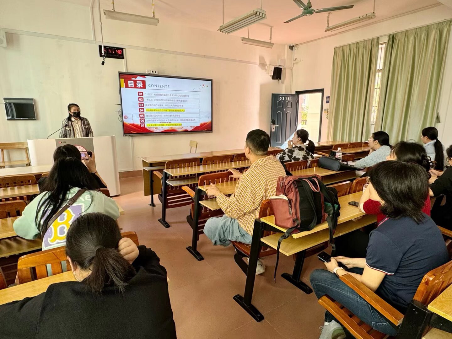 系主任带领老师们学习会议精神