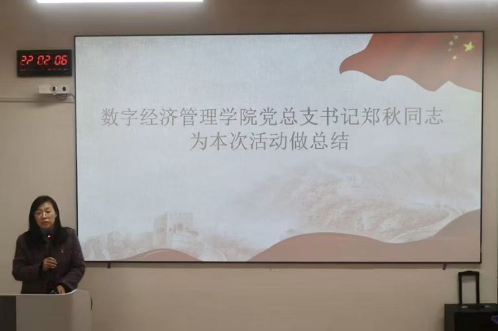数字经济管理学院党总支书记郑秋同志做活动总结