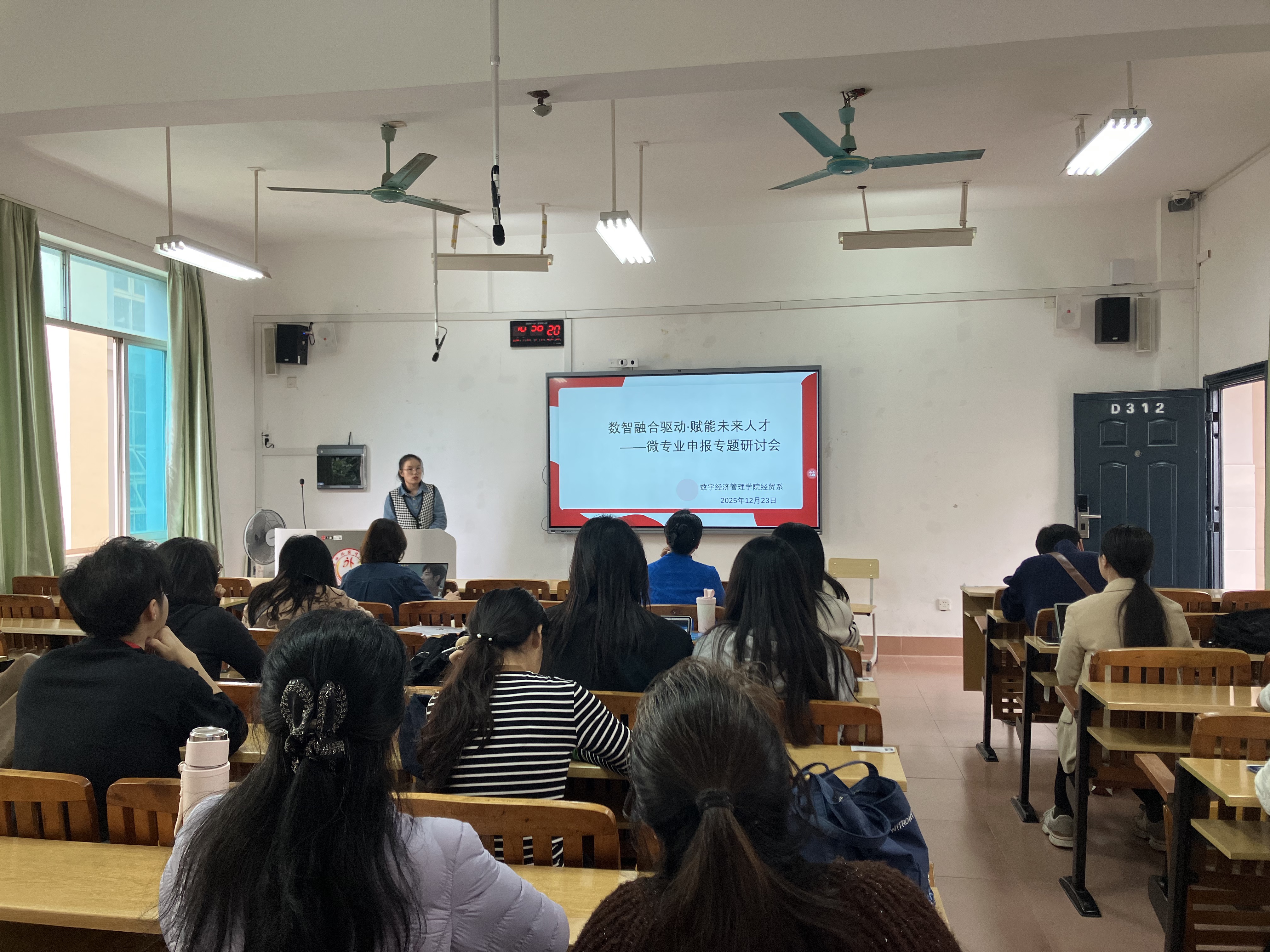 为响应学校学科建设创新号召,主动对接数字化转型与人工智能发展趋势,12月23日,数字经济管理学院经济与贸易系组织召开微专业建设专题会议。本次会议由经济与贸易系全体教师参会,系主任文园园主持。围绕数字化与人工智能发展趋势,聚焦依托优势学科开设特色微专业的议题展开讨论。