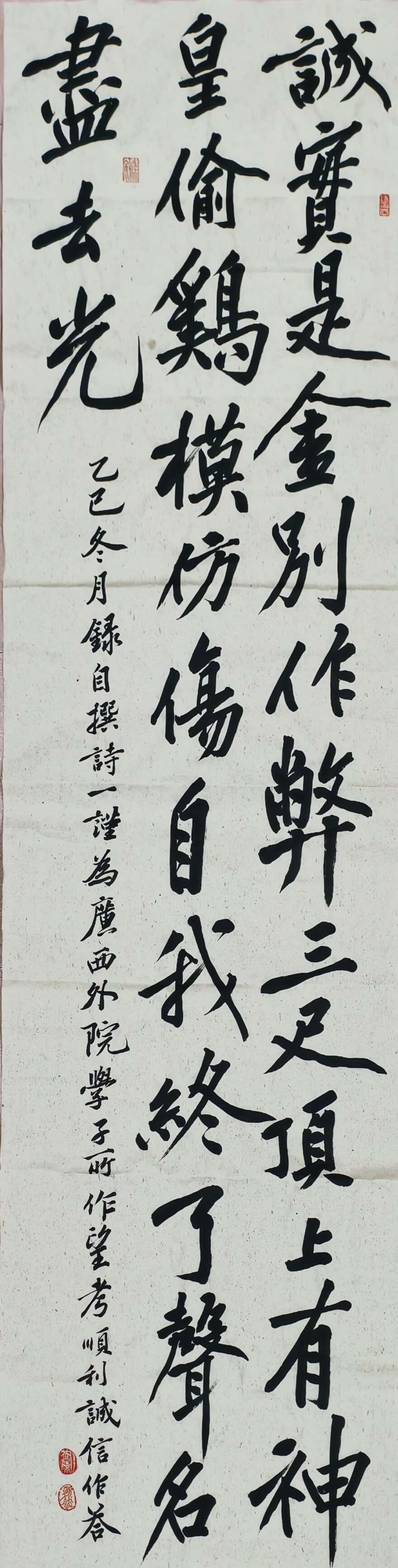 此外,我院积极开展“诚信应考・恪守初心” 书画展作品征集活动,广泛动员师生以书法、绘画等艺术形式诠释诚信内涵。书画作品涵盖楷书、水彩、漫画等类型,内容紧扣“诚信立身”“拒绝作弊”等主题,既有传统格言警句的书法呈现,也有原创诚信应考插画,兼具思想性与艺术性,展现了全院师生对诚信品质的追求。