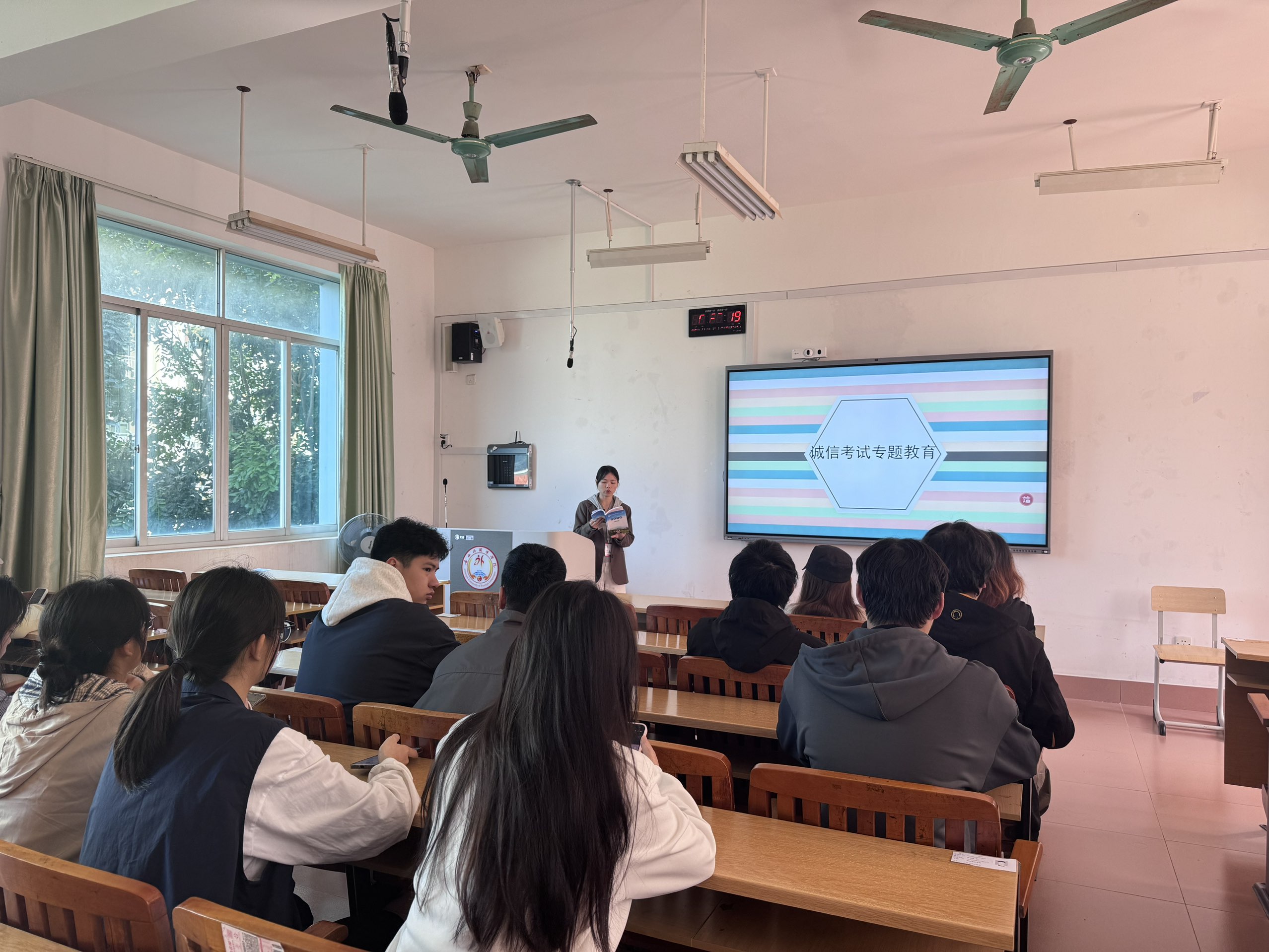 为贯彻落实学校诚信教育部署,营造公平诚信的考试氛围,引导学生树立正确价值观,数字经济管理学院于12月下旬开展“诚信应考,恪守初心”系列主题教育活动。活动覆盖全院所有在校班级,形式多样、内容扎实,有效强化了学生的诚信意识与纪律观念。