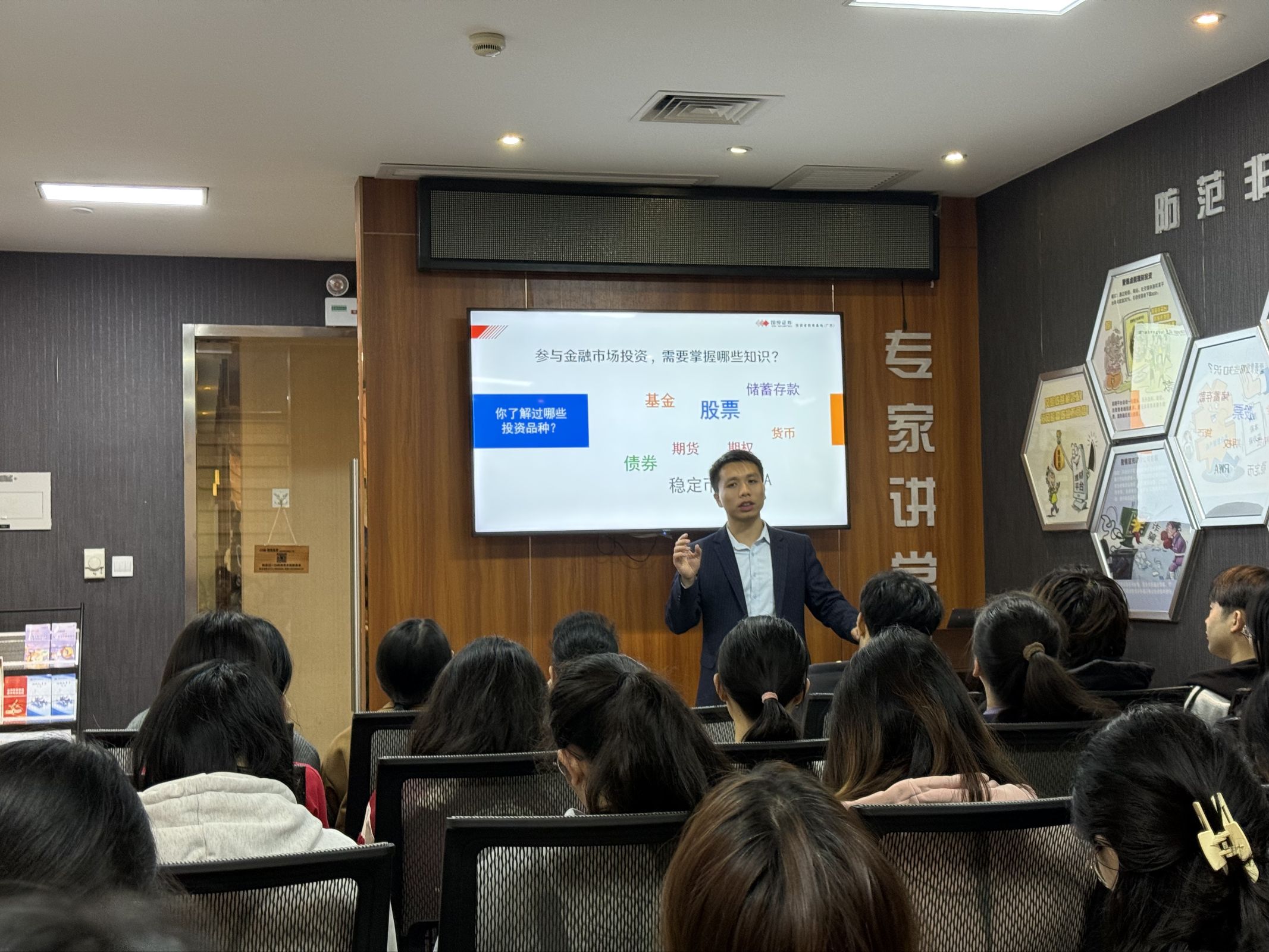 在随后的专题讲座环节,国投证券的老师为同学们带来了干货满满的分享。讲座内容紧密结合当前经济形势与市场热点,围绕“金融实操与投资知识”核心主题展开。讲师们用通俗易懂的语言,讲解了宏观经济指标与股市的关联、基础的投资工具与分析方法、资产配置的基本理念以及风险管理的重要性。通过真实案例的剖析,同学们将课堂理论知识与真实市场情景相结合,对金融实操有了更深刻的体会,投资理财意识与理性投资观念得到了有效强化。