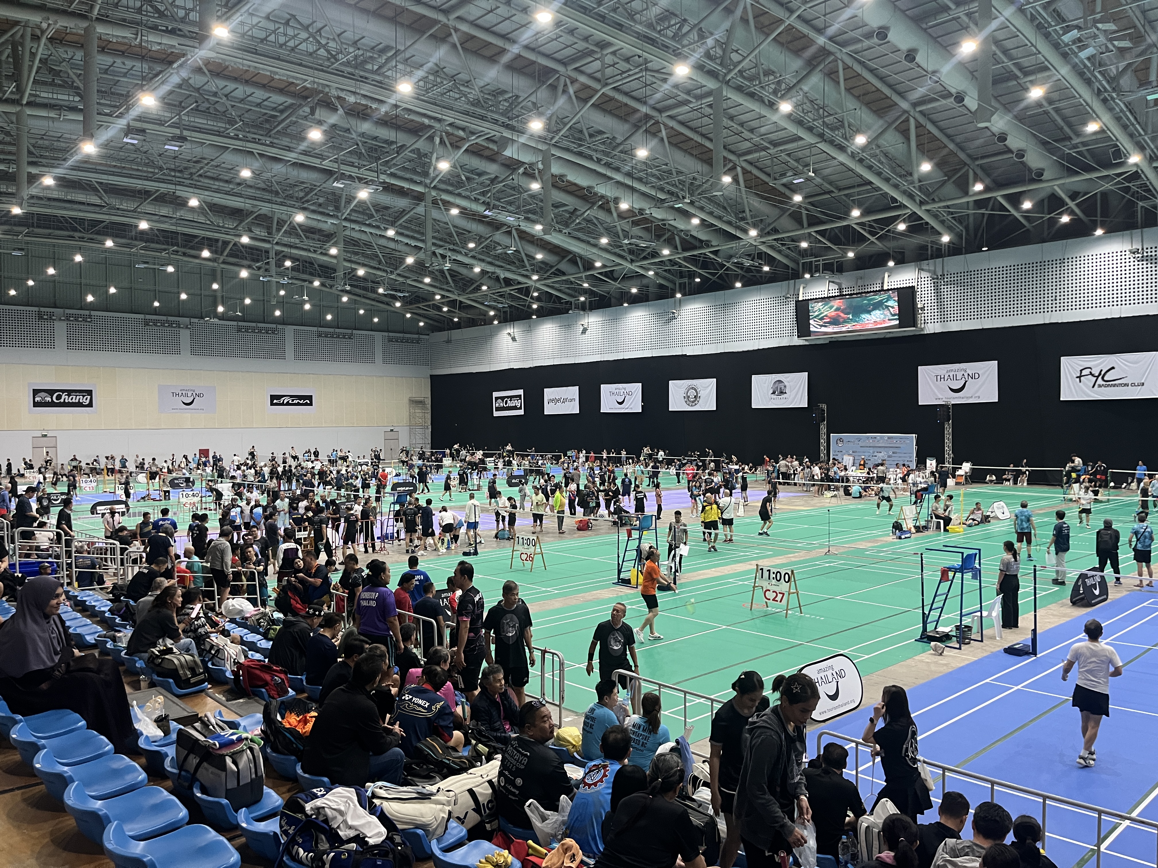 赛事期间,20名学子各司其职、默契协作,全方位保障赛事顺畅开展。6名学子担任主席台播报员,依托扎实的中泰、英泰、粤泰双语功底,结合对羽毛球赛事规则的熟练掌握,精准衔接裁判组与运动员,及时传递赛程安排、比分播报等赛事信息,保障现场沟通零障碍;6名内场翻译穿梭于赛场各处,不仅协助裁判与运动员高效对接判罚规则、赛事流程,还主动为参赛人员指引比赛场地、介绍场馆设施位置,快速响应饮水补给、器材调整等突发需求;4名学子坚守场外销售点,充分发挥语言优势,助力销售人员与中外顾客顺畅沟通,保障场外服务有序推进;2名学子负责场外签到与财务辅助工作,细致完成运动员签到核验、比赛纪念衫发放及财务单据整理等事宜;2名男学子承担酒店与赛场交通接送协调任务,协助司机与运动员沟通往返行程、核对乘车人数,确保出行安全顺畅。其中,我院4名经济与金融专业交换生充分发挥“专业+语言”双重优势,将课堂所学与实践服务结合,不仅提升了双语应用、应急处理与跨文化沟通能力,更积累了宝贵的社会实践经验,为未来职业发展筑牢基础。