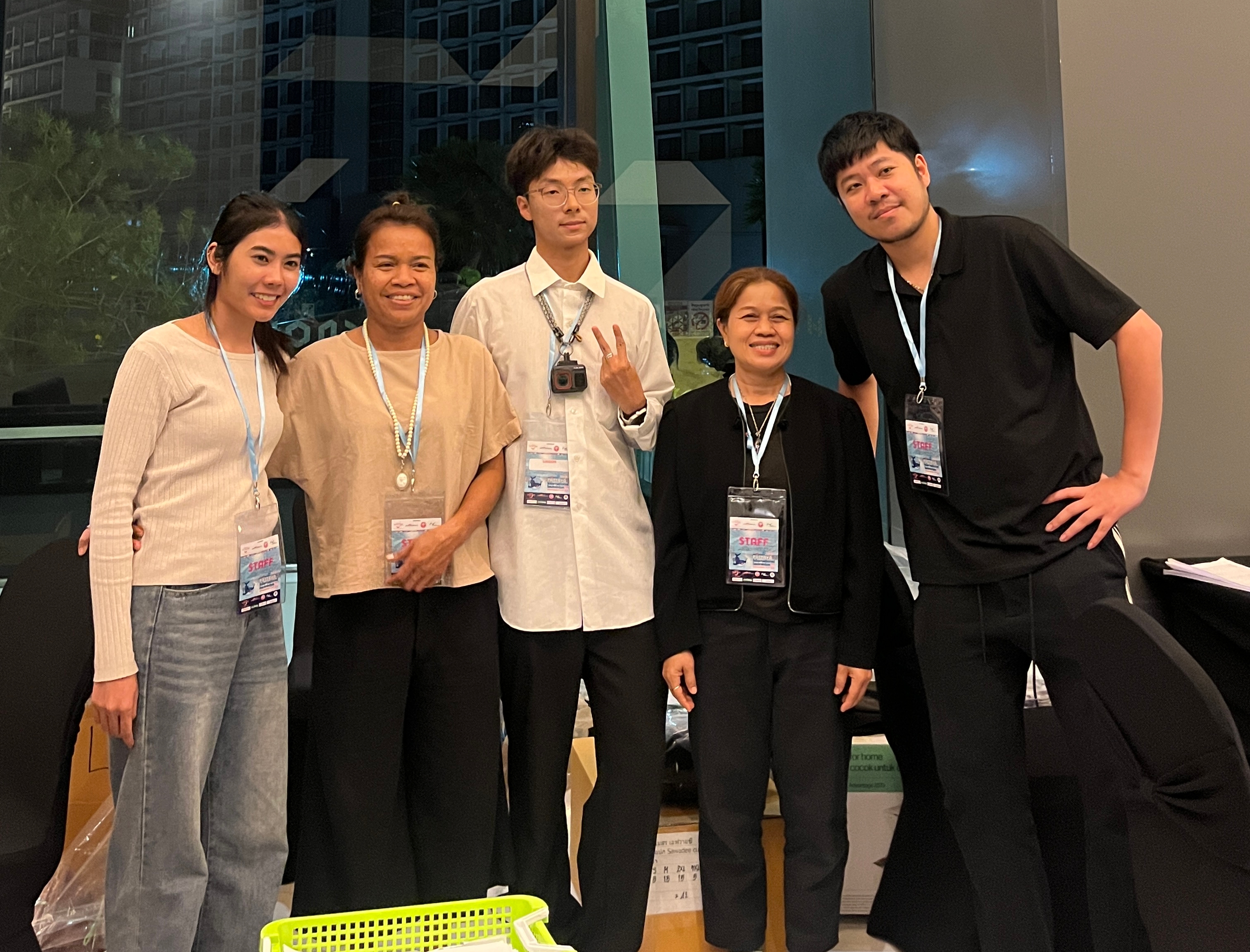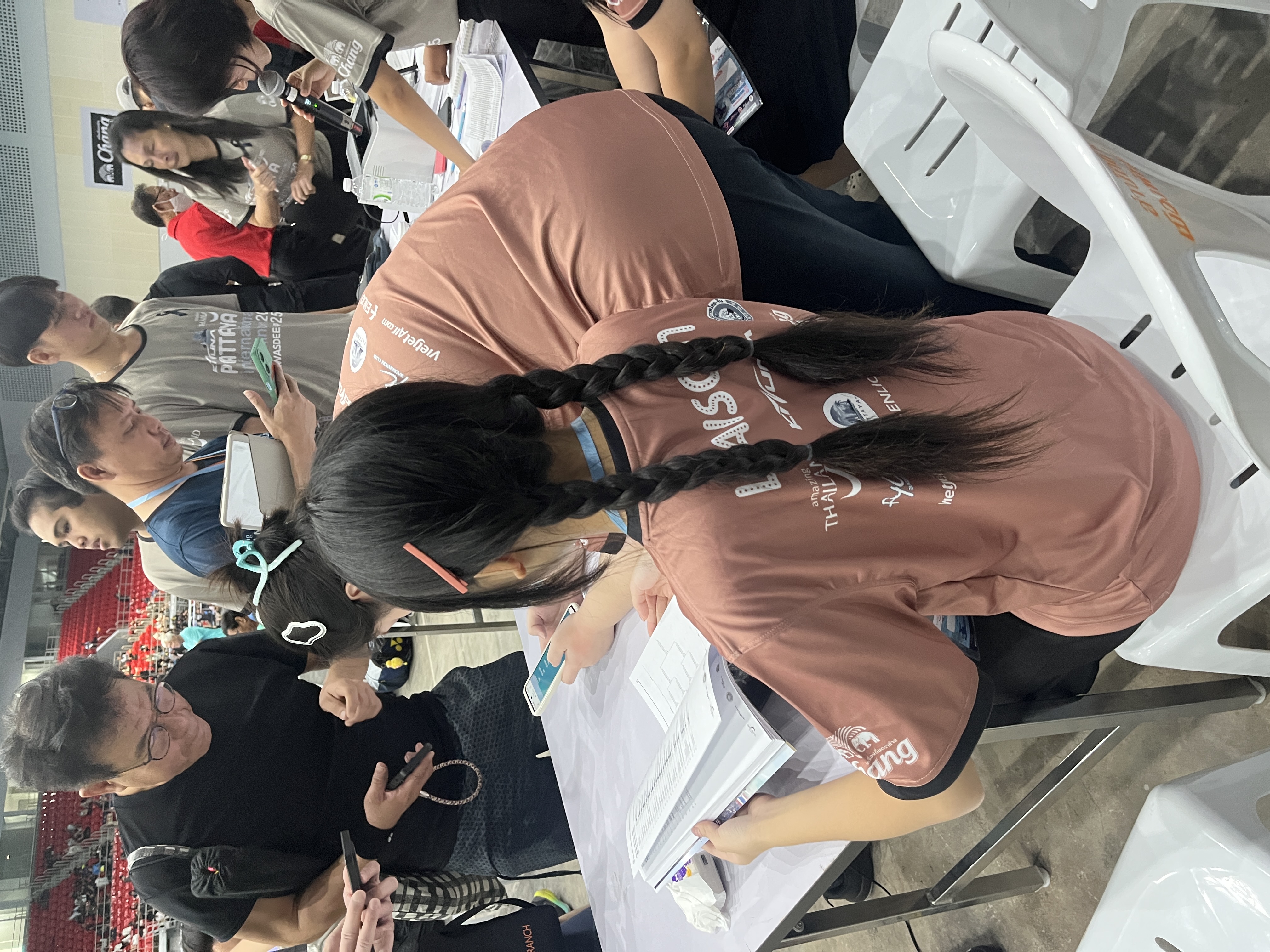 本次赛事于11月21日—23日举行,志愿服务周期从11月20日持续至23日,覆盖赛事筹备、开展及收尾各环节。李华星老师提前统筹部署、细化分工细则,明确各岗位职责与工作要求,为志愿服务高效有序推进筑牢基础。20名广西外院学子分两批从NBU出发:一批奔赴素万纳普机场迎接香港李宁队,全程陪同前往官方酒店,细致做好行程衔接与引导服务;另一批直达赛事官方酒店,协助各参赛团队办理入住手续、完成签到登记,凭借流利中泰双语精准化解语言壁垒,耐心解答参赛人员关于赛事安排、住宿服务等疑问,高效完成前期筹备工作,为赛事顺利开局提供坚实保障。