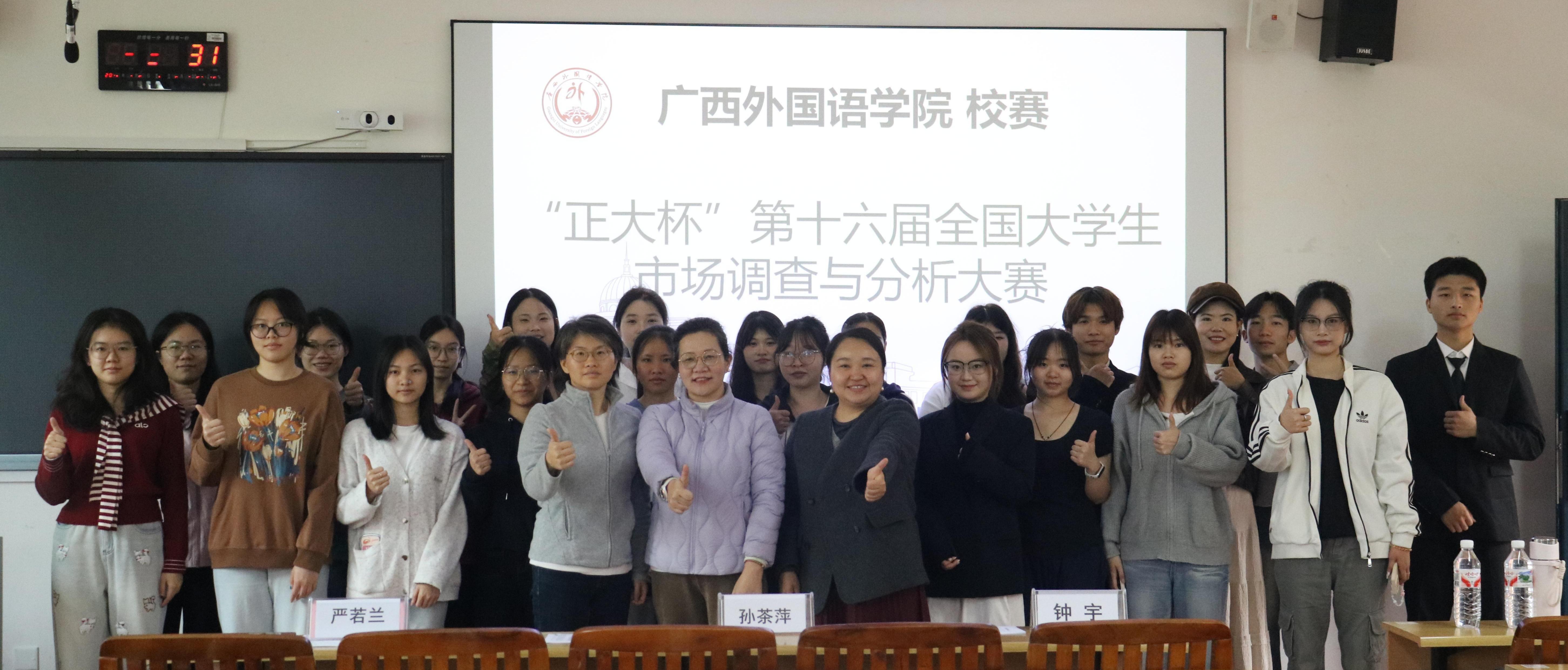 2026年3月22日,由数字经济管理学院市场营销专业承办的“正大杯”第十六届全国大学生市场调查与分析大赛广西外国语学院(本科组)校赛圆满落下帷幕。本次大赛旨在提升我校学子在市场调查、数据分析及商业洞察方面的实战能力,经过激烈的角逐,我校两支优秀队伍脱颖而出,成功晋级区赛。