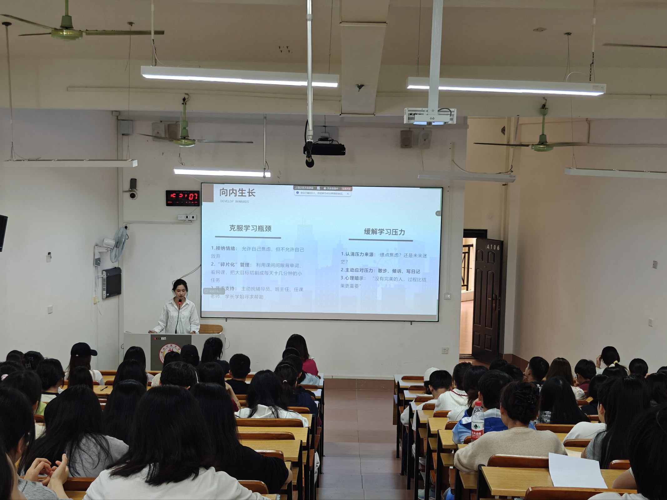 众多参会学生到场聆听分享会