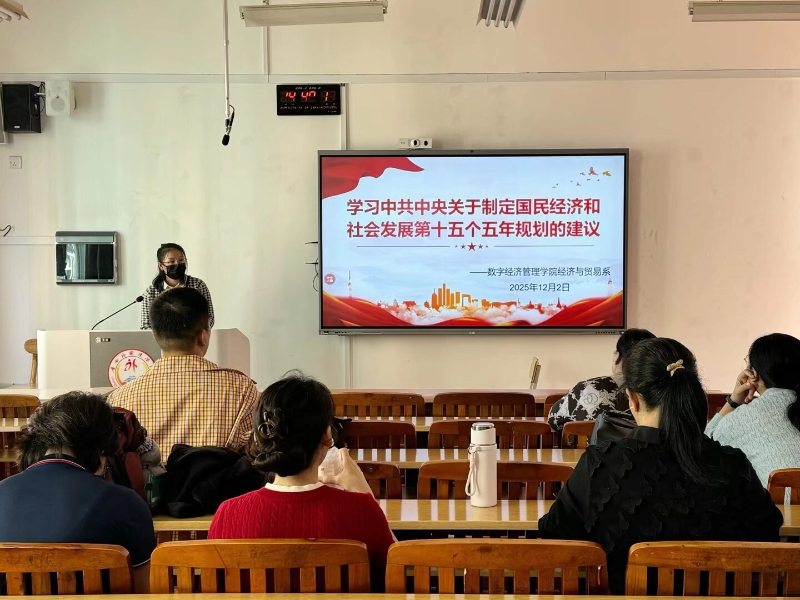 数字经济管理学院经济与贸易系在大同楼D318召开了专题学习会议,深入学习《中共中央关于制定国民经济和社会发展第十五个五年规划的建议》(以下简称“十五五”规划建议),并围绕国际经济与贸易、跨境电子商务、市场营销、物流工程四个专业的建设方向展开讨论。系主任文园园主持会议,经贸系全体专业教师参加,活动采用全系集中学习,集中讨论的形式。会议旨在将国家战略需求转化为专业发展的具体路径,推动人才培养与产业升级同频共振。