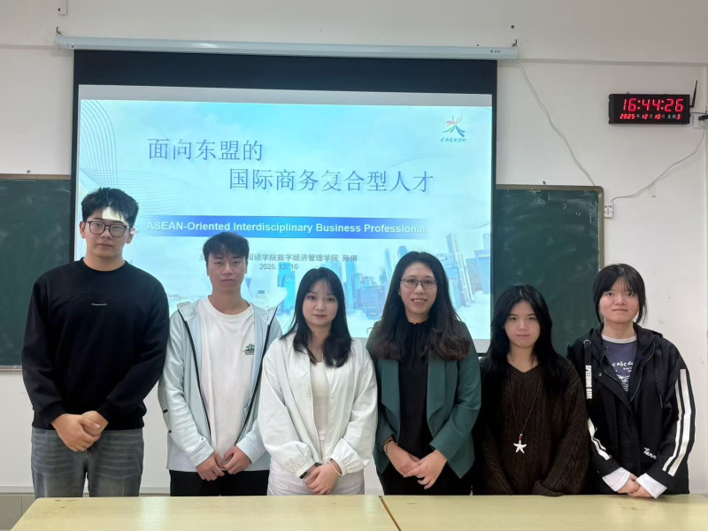 应广西民族大学经济学院邀请,我院数字经济管理学院院长、国际商务校外导师、自治区级课程思政教学名师陈倩教授赴该校,为广西民族大学经济学院国际商务专业学生开展主题为《面向东盟的国际商务复合型人才培养》的精彩讲座。