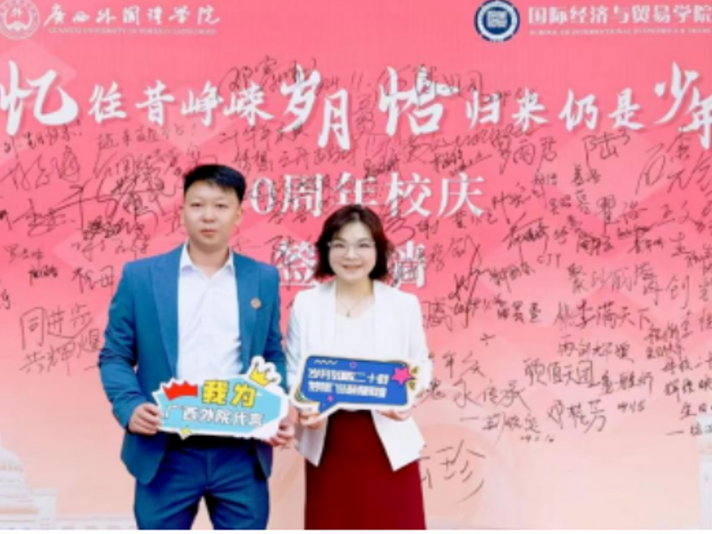 2025年5月17日,广西外国语学院迎来了一群特殊的“归家人”——2015级国际经济与贸易专业西4栋112宿舍的校友们重返母校,共赴十年之约,追忆青春岁月,畅叙同窗情谊。