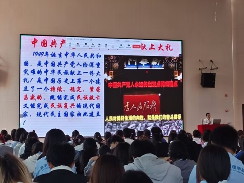 广西外国语学院数字经济管理学院在五合校区的博学大讲堂组织开展广西外国语学院党委党校第38期入党积极分子培训班二班党课培训会。