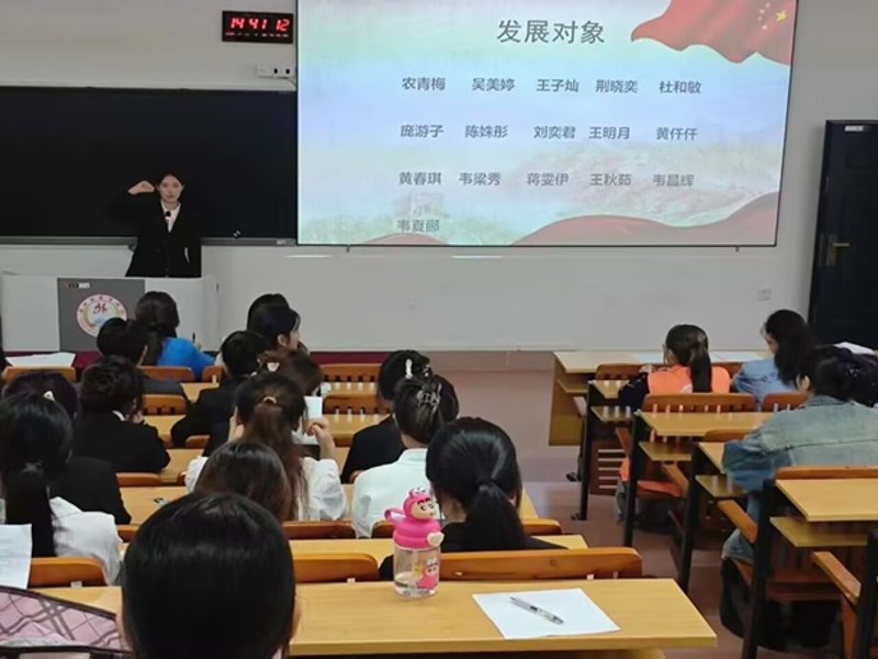为加强党员发展工作,提高入党积极分子的思想觉悟和政治素养。广西外国语学院数字经济管理学院党总支在五合校区时习楼A303教室隆重举行第38期入党积极分子培训班开班典礼暨党课培训。广西外国语学院党委委员、宣传部部长蒋成军同志,数字经济管理学院党总支书记郑秋同志,数字经济管理学院党总支副书记李鹏飞同志,学生第二党支部书记张焕兰同志以及数字经济管理学院党总支全体第38期入党积极分子出席开班仪式。