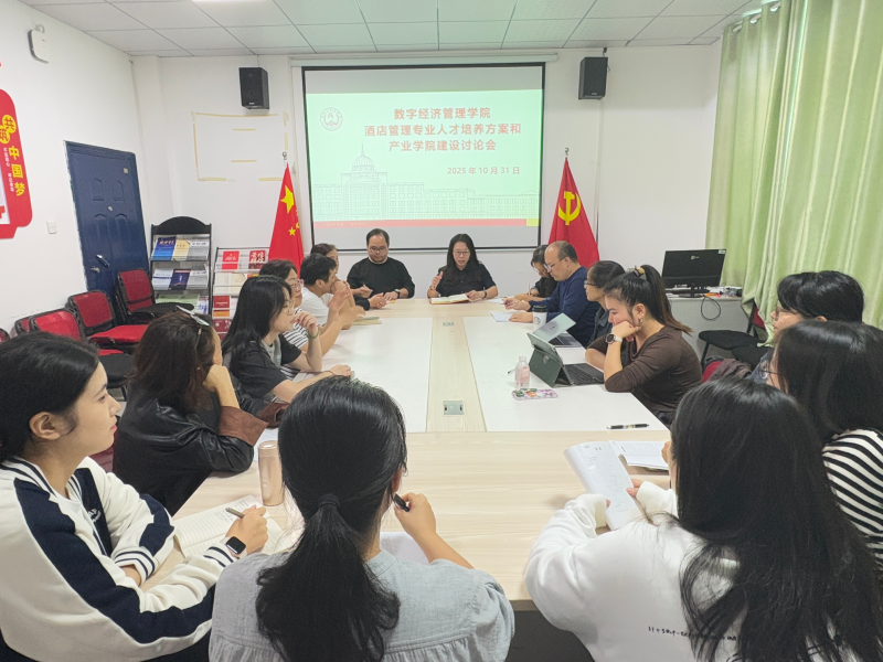 广西外国语学院数字经济管理学院召开酒店管理专业人才培养方案修订与产业学院建设专题讨论会。会议聚焦数字经济时代酒店管理专业转型升级需求,围绕产“产教协同创新”、“岗课赛证融通”两大核心议题展开深度研讨,为打造具有区域特色的酒店管理人才培养高地提供战略指引。
